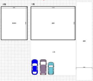 | 種別/構造 | 倉庫/鉄骨造 | 区画/所在階/階建 | 北側 2階建/ 1-2階/ 2階建 |