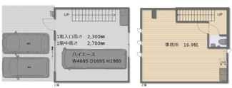 ■電動シャッター高さ 約2.3m 1階倉庫・車庫内 高さ約2.7m■前面駐車スペース有り