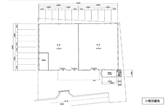 | 備考 | 坪単価約7016円、倉庫1749㎡(約529.07坪)事務所65㎡(約19.66坪)、トイレ有り、軒高9m、駐車場有り、現状渡し。 | ||