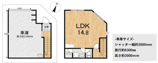 ■1階 車庫サイズ シャッター幅 約3m・奥行 約6.3m 高さ 約3m